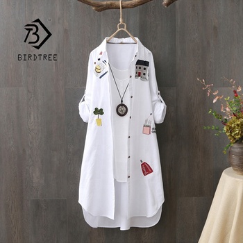 Lose lange Hemd Frauen Baumwolle Haus Stickerei Langarm Plus Size M-3XL Weißes Hemd Bluse Tops Outwear T16613X